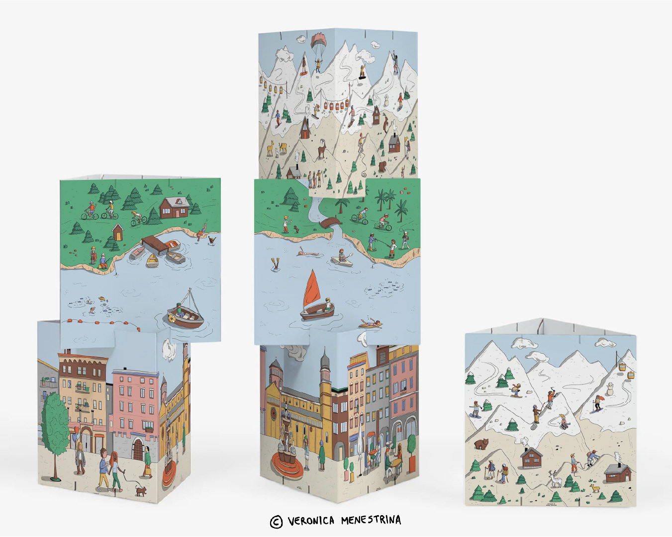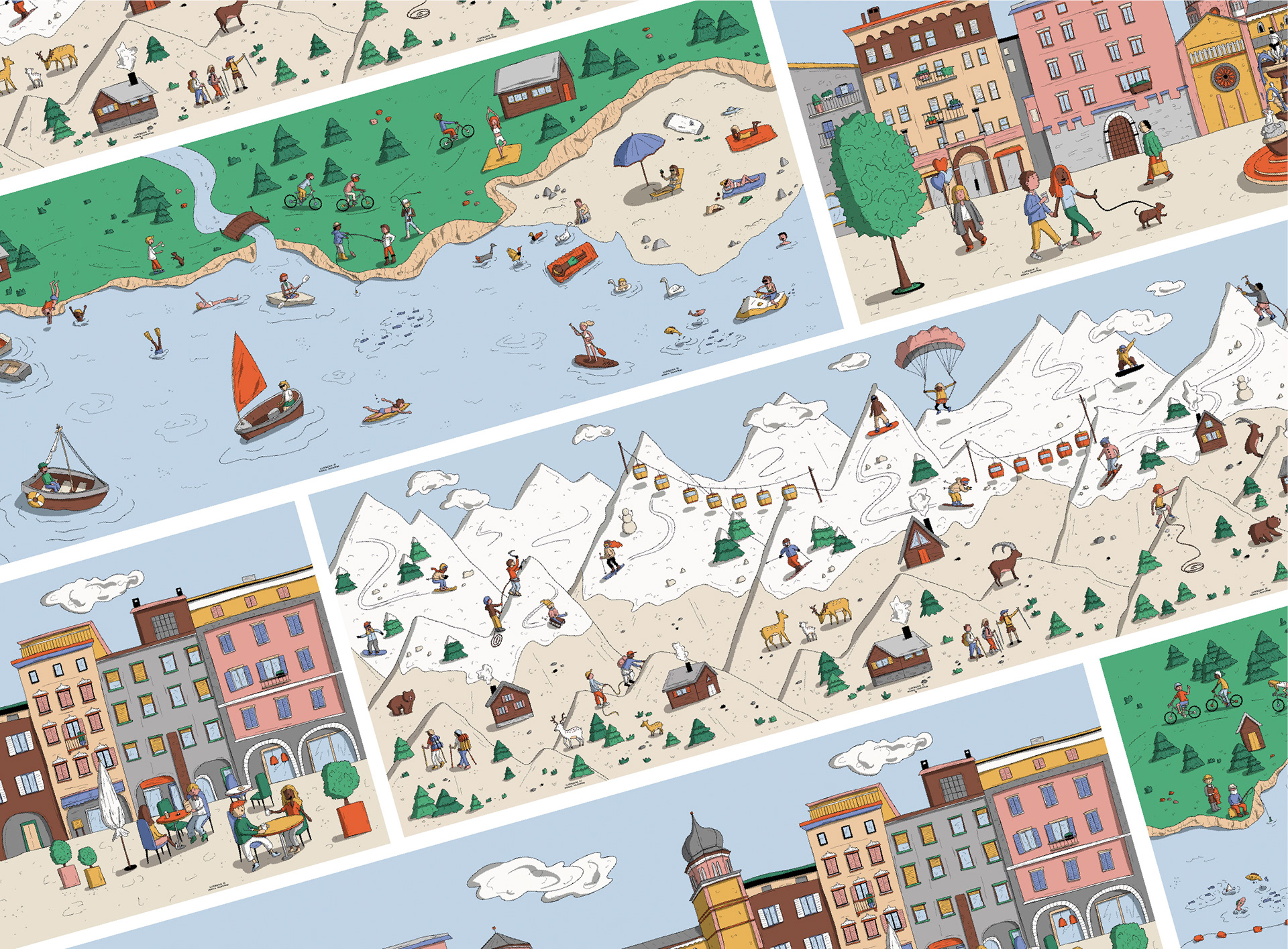 Totem showing Trentino region with its mountains, lakes, and city. Client: Cerco casa in Trentino, real estate agency